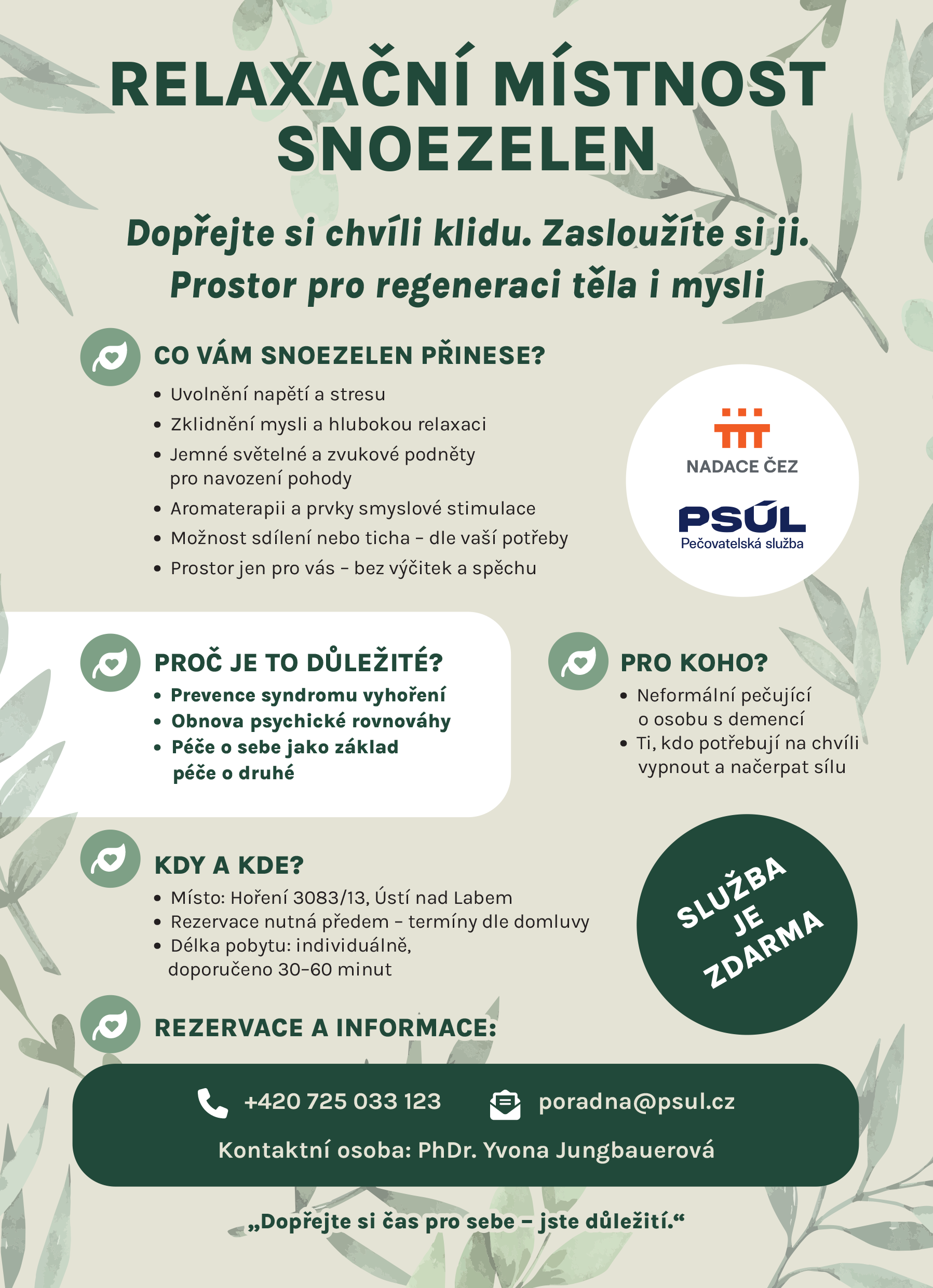 Grafický návrh letáčku pro Pečovatelskou službu Ústí nad Labem.